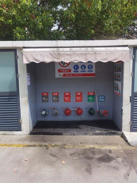 站內建有加油區(qū)、站房、埋地油罐區(qū)及卸油區(qū),變配電間位于站房內。加油區(qū)設置加油罩棚,罩棚下設置6臺雙油品四槍潛油泵式電腦稅控加油機,埋地罐區(qū)設在站房東側綠化區(qū)域內,均為單層埋地臥式鋼質油罐(30m³埋地汽油罐3只,分別儲存95#汽油、92#汽油、92#汽油)及30m³埋地0#柴油罐2只,并設置防滲罐池。加油站安裝汽油卸油和加油油氣回收系統(tǒng),預留油氣后處理裝置位置。