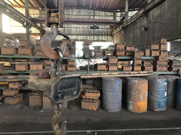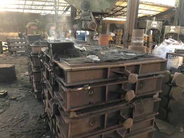 該企業(yè)主要生產(chǎn)鐵鑄件,生產(chǎn)過程中主要涉及制模、熔煉、吊運、澆鑄、浸漆、焊接切割等作業(yè),主要生產(chǎn)設(shè)備為造型機、射芯機、中頻爐、澆包、拋丸機、起重機等,主要生產(chǎn)原料為廢鐵、生鐵、硅鐵、錳鐵等。